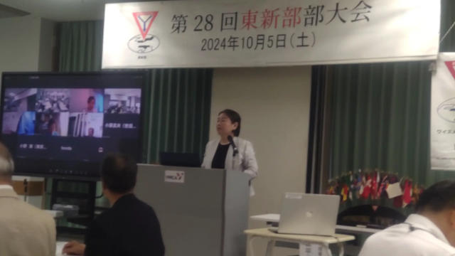第28回東新部部大会が10月5日に行われました。9月に山中湖センターでのユースボランティア・リーダーズフォーラムの最中に急逝された東京多摩スマイルクラブの城田メンへの黙祷から始め、まず今井部長、山田東日本区理事、菅谷東京YMCA総主事の心温まる挨拶がありました。しかし何と言ってもメインテーマは第2部の株式会社クリスチャンサービス代表取締役の佐々木行恵さんのお話し「自分と家族への贈り物はエンディングノート!」です。部大会実行委員長東京クラブの渡邉実帆さんの司会で行われましたが、出席者の年齢柄最大の関心事なので、皆熱心に話を聞き、エンディングノート練習帳に書き込んでいました。難しいテーマなので危惧した面もありましたが出席者は次期理事の山下メンを始め東日本区各部からの方をあわせて48名の盛況となりました。有意義な部大会だったと思います。皆さんエンディングノートを残しましょう。
